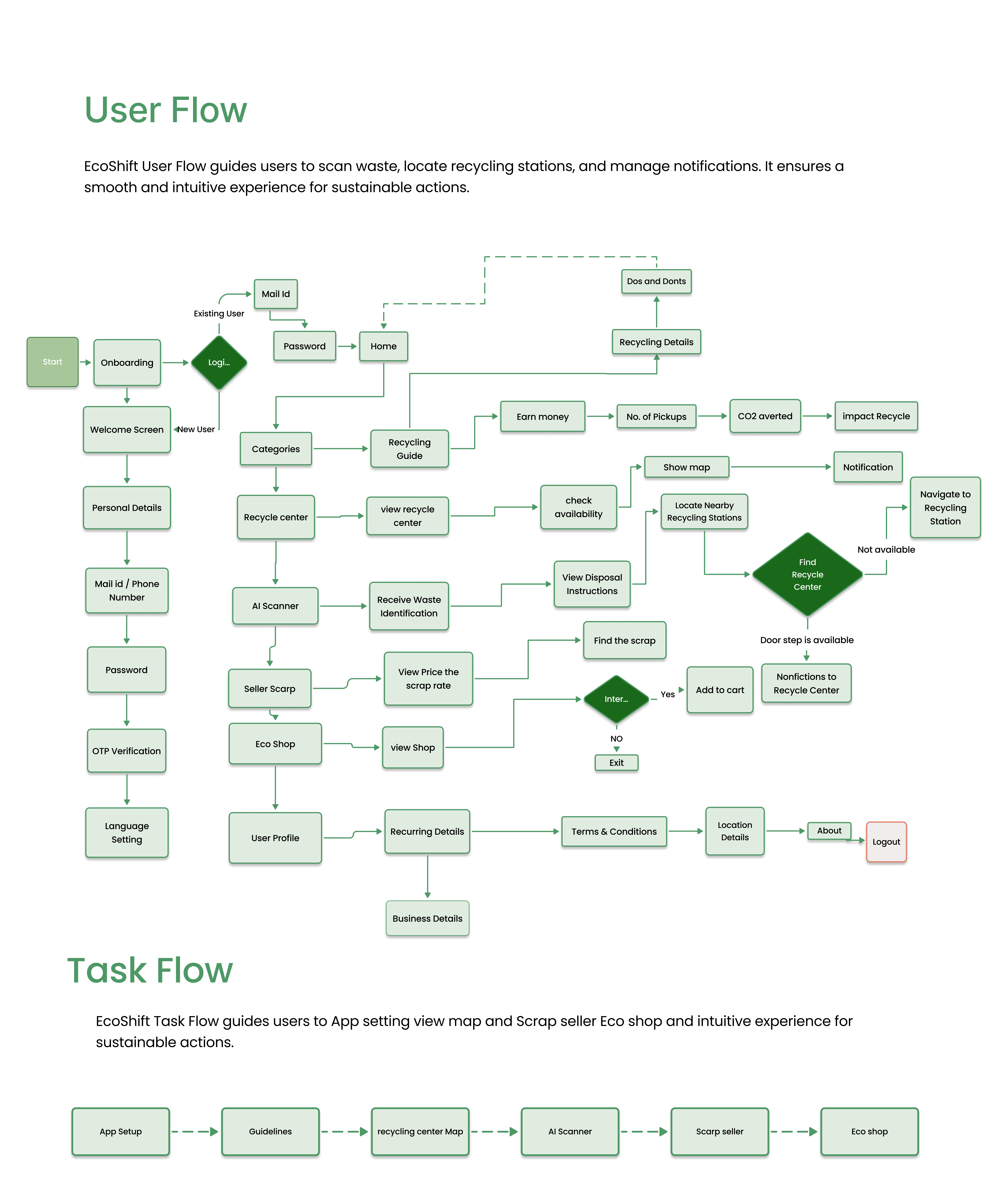 EcoShift addresses key recycling challenges, such as waste contamination, lack of awareness, and limited access to recycling centers. The app features an AI scanner for waste identification, real-time notifications for recycling collection, and a mapped directory of recycling stations. By streamlining waste sorting and promoting efficient recycling, EcoShift makes sustainability more accessible.